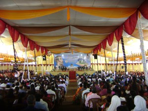 (La figura del Santo se ilumina con un nimbo sobrenatural.)